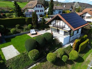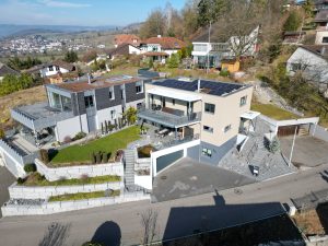 Mittels Drohnen-Aufnahmen präsentieren wir Ihre Liegenschaft optimal von aussen: mit Garten / Balkon und Umgebung.